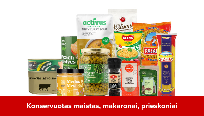 *Išskyrus kavą, vietoje paruoštą maistą, gėrimus, kūdikių maistą ir prekes, kurių kainų kortelėse nurodyta NAUJIENA Iš daugiau nei 9000 prekių, bent 10% yra su 25 proc. ar daugiau sumažinta kaina. Priklausomai nuo užsakymo pristatymo adreso ir surinkimo centro iš kurio renkamos prekės, prekių asortimentas gali skirtis.